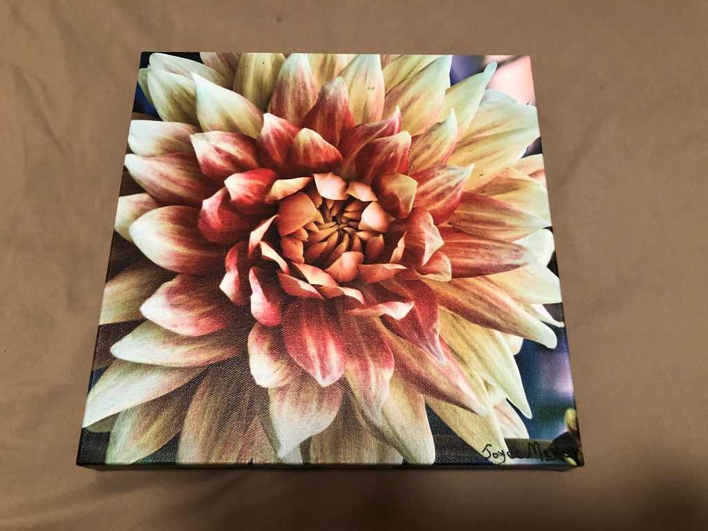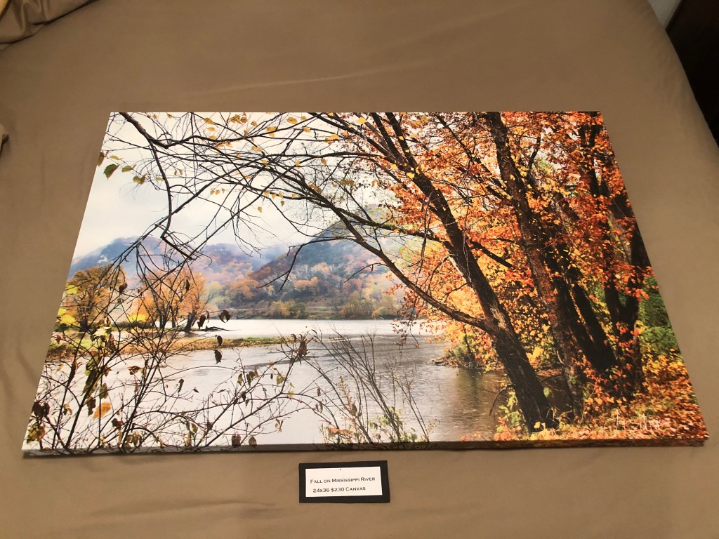 Wrap around canvas pricing: Canvases are tight, well constructed, UV sealed and scratch resistant with a covered back and hanger. Large canvases like 24×36 range from $230 to 20×30 $200. Smaller sizes are available. Other ways my photos are done are on metal, metallic paper, fine art paper, tile, mugs, magnets, cards and more.