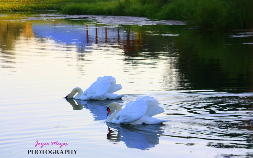 swans in farm pond